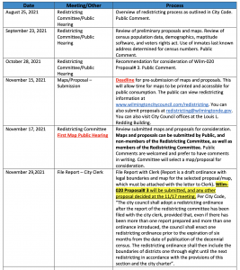 REDISTRICTING SUMMARY PROCESS TENTATIVE TIMELINE