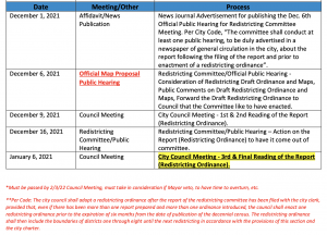 To find a complete list of procedures the City Council Redistricting Committee must follow, visit the following link here.