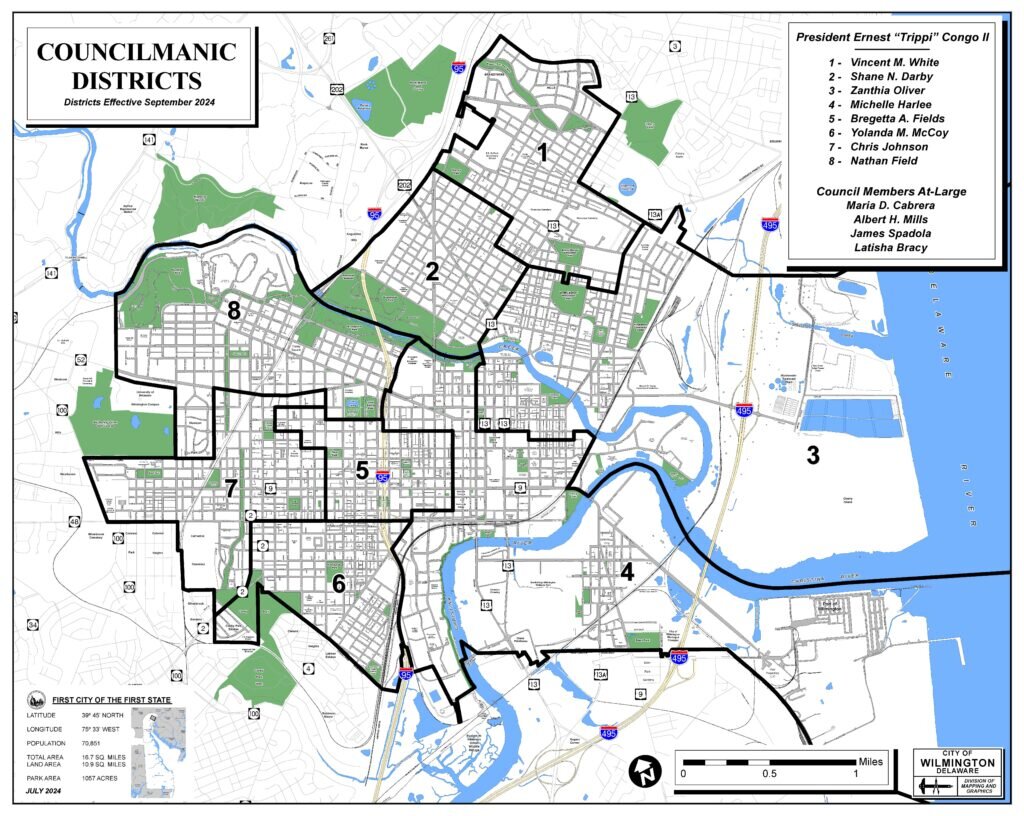 To set in motion the process of redistricting, a redistricting committee has to be formed by Wilmington City Council. Per City Code/Charter, Sec. 2-32, the city council’s redistricting committee must be comprised of the president of city council and six members appointed by the president of city council. The following Councilpersons have been appointed to the official City Council Redistricting Committee: