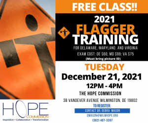 The HOPE Commission will host a *Free* Flagger Training Class for DE, MD, VA. (Must bring picture ID)