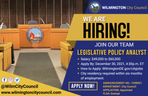 Wilmington City Council is Hiring for a Legislative Policy Analyst
