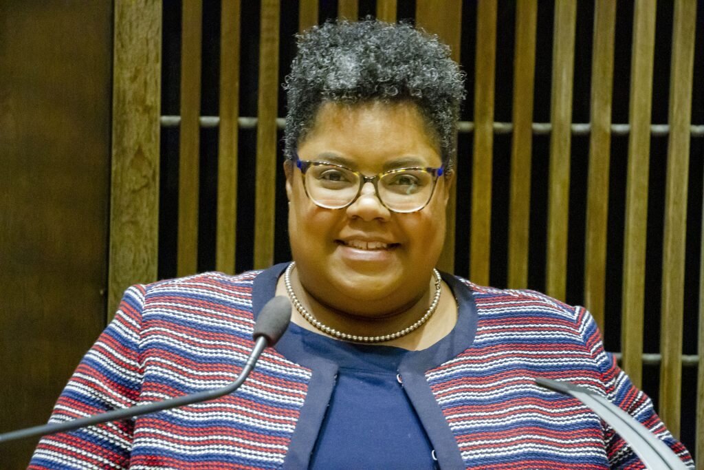 Latisha Bracy stands before the Committee of the Whole of Wilmington City Council in Council Chambers on Monday, November 28, 2022. Photo by Yesenia Taveras, Director of Communications for the Wilmington City Council.